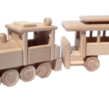 A vonat tömör bükkfából készült, felülete kizárólag viaszolt és polírozott. Megőrzi a fa autentikus erezetét, kíméletes és biztonságos a gyerekek kezének.