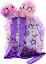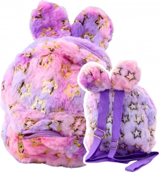A hátizsák puha plüssből készült, amelybe arany színű csillogó csillagok vannak beépítve. A felfelé álló fülek mesei bájt adnak, és a pasztell színek kombinációja barátságossá teszi a gyermekek számára. A hátizsák egy fő cipzáros zsebbel és egy elülső kisebb zsebbel rendelkezik, amely ideális apróságok tárolására.