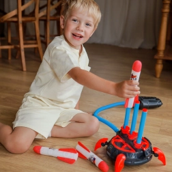 A lábpumpa erős levegőlökete igazán magasra repíti a puha habrakétákat – remek versenyzéshez és a távolságérzék gyakorlásához.