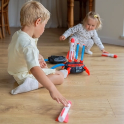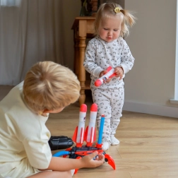 A játék fejleszti a nagymozgásos készségeket, a koordinációt és a tudomány iránti kíváncsiságot. Szerszám nélküli, egyszerű összeszerelése miatt ideális a kertbe, a parkba és az udvarra is – a rakéták puha orr része pedig biztonságos szórakozást nyújt éles szélek nélkül.