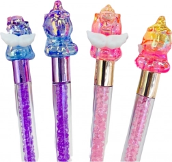 Fekete tintájú és színes megjelenésű zselés toll, amelyet forgó egyszarvú figura díszít, gyakorlati funkciók és egyedi varázs kombinációját hozza el. A 17 cm-es hossznak köszönhetően remekül illik a kézbe, könnyen szállítható tolltartóban, kozmetikai táskában vagy kézitáskában.