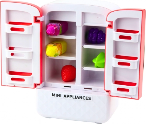 A játék hűtőszekrény innovatív funkcióival és lehetőségeivel kápráztat el. Tartalmaz színes gyümölcsöket, italos üvegeket és polcokat a belső elrendezés szabad variálásához, amely kreativitás fejlődését és szervezési ismereteket biztosít a gyermekek számára. Ideális valódi élethelyzetek szimulálásához is.