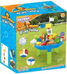 Élvezze a felejthetetlen kalandokat! A WOOPIE márkájú víz és homok asztal ideális választás 3 éves kortól gyerekek számára. Ez a készlet három funkciót egyesít – homokozó, vízasztal és kalózhajó, mely lehetővé teszi a kis kalandoroknak várépítést homokból és kísérletezést a vízzel.