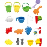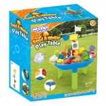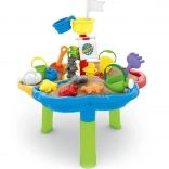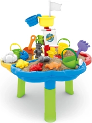 Az asztal három szekcióra van osztva – külön víznek, homoknak és játék térnek. További 13 kiegészítő biztosít még több szórakozást! A készlet ideális házba és kertbe, például a strandra vagy az udvarra.