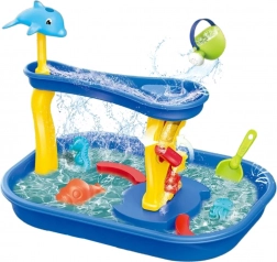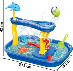Vizes játék 2 az 1-ben vízikerékkel és csúszdával – ideális nyárra! Hozzon létre egy egyedülálló játékzónát gyerekek számára a kertben vagy otthon. A játékos, színes asztal kombinálja a horgászást, a víz megmozgatását és áramlásának figyelését vidám szerkezeteken keresztül, mint például a vízkerék vagy a delfines csúszda.