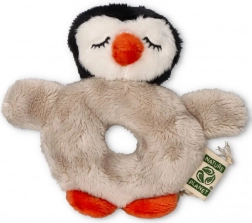 Ez a pingvin alakú plüss csörgő a legkisebbeknek készült – puha, kellemes felületű, ergonomikus „fánk” formával és középső nyílással a könnyű megfogásért. A finom csörgőhang természetes módon stimulálja a hallást, és segíti a szem–kéz koordináció fejlődését.