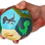 Ez a puha, dinoszaurusz mintás gyerek labda élénk színeivel és barátságos dizájnjával hívja fel magára a figyelmet. Könnyű és rugalmas kialakításának köszönhetően könnyű elkapni és összenyomni, ami segíti a fogás fejlesztését és erősíti a finom- és nagymotorikát. Ideális az első dobásokhoz, elkapásokhoz és gurításhoz.
