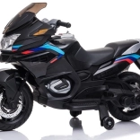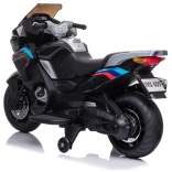 Sportos verziójú akkumulátoros motor vonzó designnal, jellegzetes díszítések a valódi járművekre jellemzőek. Tartós ABS műanyagból készült, modern és eredeti elemekkel, melyek minden gyermeket lenyűgöznek. A kiegészítő oldalkerekek segítenek az egyensúly megőrzésében.