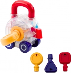Az oktatási készlet autókkal és kulcsokkal kiváló játék a kis felfedezők számára. A csomag tartalma: három mentőautó - mentő, tűzoltó és rendőrautó. Mindegyik autó speciális zárral rendelkezik, amelyet a gyerekek színes kulcsok segítségével nyithatnak ki. Ez az interaktív játék segít a logikus gondolkodás, a koordinációs készségek és a gyermek kognitív képességeinek fejlesztésében. A játék kiváló minőségű, biztonságos anyagokból készül, amelyek garantálják a hosszú élettartamot. Az átlátszó konstrukciónak köszönhetően a gyerekek láthatják, hogyan működik a zár mechanizmusa, ami nagyon lebilincselő és oktató. Az autók csendes kerekekkel rendelkeznek, amelyek zökkenőmentes és kényelmes játékot tesznek lehetővé különböző felületeken. A színek és a dizájn serkentik az érzékeket és támogatják a kreativitást. A készlet esztétikus ablakos dobozban van csomagolva, ideális ajándékként.