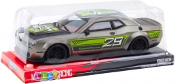 Az ezüst-zöld dizájnú sportautó lenyűgözi a sebesség szerelmeseit és a precíz modellek kedvelőit. A hátsó mechanikus meghajtásnak köszönhetően az autó könnyedén mozog előre akkumulátor nélkül, ami a természetes vezetést szimulálja. Ez a modell tartós anyagokból készült, amelyek durvább bánásmódot is kibírnak, és realisztikáját a 29-es szám és a verseny részletek fokozzák. Kiválóan alkalmas otthoni és kültéri szórakozásra egyaránt, sima felületeken.