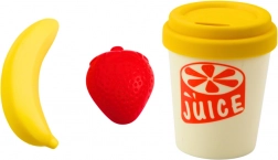 A csomag színes műanyag gyümölcsöt is tartalmaz: eper, banán és lime, valamint egy koktélbögrét. Minden elem biztonságos és remekül illik a gyerekek kezébe.