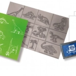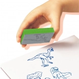 - 11 egyedi dinoszaurusz motívumokkal ellátott bélyegző