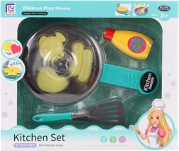 Készlet tartalma: Serpenyő, ketchupos üveg, fordítólap és három utánzat étel.