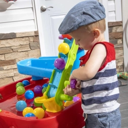 A STEP2 márka Kis Felfedező Asztala elég nagy ahhoz, hogy közös játékot biztosítson, mely támogatja a szociális készségek fejlesztését és a megosztás tanulását. Víz hozzáadásával az asztalhoz növelhető a játék öröme, melyet a gyerekek interaktív tanulásra és szórakozásra használhatnak.
