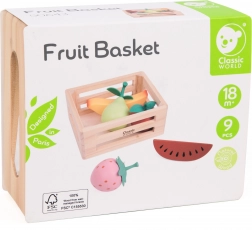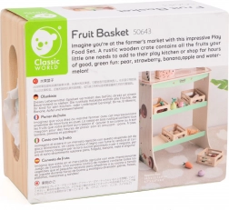 Fa kosár gyümölcsökkel a Classic World-tól ideális a gyerekek számára, akik szeretik a kreatív játékot szakácsként vagy boltosként. A különféle gyümölcsöket ábrázoló fa elemek szerepjátékra inspirálnak, fejlesztik a képzelőerőt és szociális készségeket.
