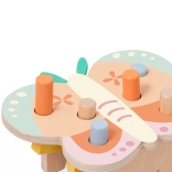 A pillangó alakú fa asztalka ideális a gyermekjátékhoz, amely ösztönzi a felfedező játékot és a hangok megtapasztalását. Ez a színes és vonzó játékforma támogatja a motoros készségek és a kéz-szem koordináció fejlődését. A készlet tartalmaz egy virág alakú kalapácsot, amely bájt kölcsönöz, és aktív játékra ösztönzi a gyerekeket.