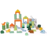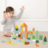 Ez a fa kocka készlet 50 élénk darabot tartalmaz különböző formákkal, melyek fák, állatok és erdei tájak ábrázolását jelentik. A magas feldolgozási minőség biztosítja a hosszú távú tartósságot és biztonságot a játék során. A kockák környezetbarátok és nem tartalmaznak káros anyagokat.