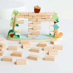 Ügyességi játék Lehulló makk a Classic World-től lenyűgöző kihívást jelent a gyerekek számára, amely fejleszti ügyességüket, türelmüket és logikai gondolkodásukat. A játékosoknak ki kell húzniuk a fa blokkokat a toronyból anélkül, hogy a tetején lévő makk összeomlana.
