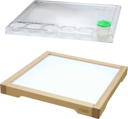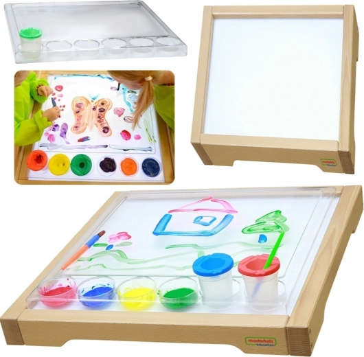 A Masterkidz fa szenzoros keret LED panellel a kreativitás fejlesztésére és a STEM rendszer támogatására lett tervezve. Háttérvilágított LED fények lehetővé teszik a lenyűgöző fényhatásokat különböző anyagokon keresztül, mint például levelek, papír vagy homok. A csomag része egy átlátszó rajztálca, amely fokozza a gyermekek művészeti alkotásait.