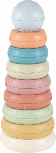 Gyűrűs piramis egy remek szórakoztató játék gyerekeknek, amely fejleszti a motoros képességeket és a szem-kéz koordinációt.