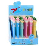 A toll felső része gumiból készült dinoszaurusz figurával van díszítve, amely dekoratív elemként szolgál és varázst kölcsönöz az egésznek. A kupaknak köszönhetően a toll hegye jól védett a kiszáradástól, a beépített gomb pedig aktiválja a látványos LED világítást, amely minden megnyomáskor kigyullad.