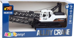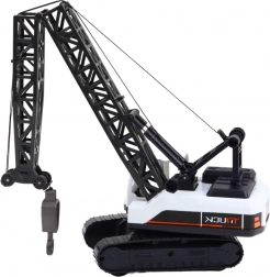 A daru karja mozgatható horoggal van felszerelve, amelyet fel és le lehet emelni. A darukar ízületeken mozog, és a forgó alap lehetővé teszi a teljes, 360°-os körbeforgást. Az egész konstrukció egy masszív szalagos alvázon épült, amely növeli a realizmust és a stabilitást. A játék fehér-fekete színösszeállításban készült, a részletek pedig a professzionális építőipari felszereléseket utánozzák.