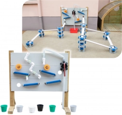 Ez a vízi és homokozó készlet tökéletes a kis felfedezők számára. Egy fa állványból és számos tartozékból áll, amelyek lehetővé teszik a gyerekek számára, hogy saját konfigurációkat hozzanak létre. Főbb jellemzők: