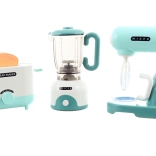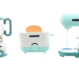 Ez a valósághű konyhai kisgépkészlet mosolyt csal minden kis szakács arcára. A turmixgép forog és hangot ad, a habverő világít és forog a habverőfejjel, a kenyérpirító pedig a toaszelemek behelyezése után vidám hangeffekteket indít. Minden tartós műanyagból készült, és a gyerekek kezéhez lett igazítva.