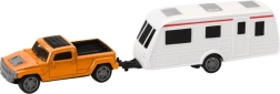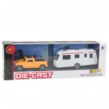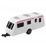 Modellünk die-cast technológiával készült, ami azt jelenti, hogy a karosszéria fémből van, míg más részek tartós műanyagból. Ez az anyagválasztás biztosítja a játék hosszú élettartamát és esztétikáját. A kemping utánfutó könnyen leválasztható, lehetővé téve a gyerekeknek, hogy különböző játékszcenáriókat hozzanak létre – a nyaralási kirándulásoktól kezdve a családi túrákig.