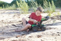 A masszív műanyag felépítés és a nagy kerekek bírják a kültéri terepeket és az intenzív játékot.