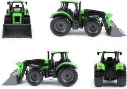 A robusztus LENA WORXX DEUTZ-FAHR traktor pótkocsival és működő elülső rakodóval rengeteg szórakozást nyújt a 3 évesnél idősebb gyerekeknek otthon és a szabadban. A játékot Csehországban gyártják minőségi műanyagból, fém tengelyekkel rendelkezik, és teljesen mechanikusan működőképes – felrak, szállít és billent. Megfelel az EU biztonsági szabványainak, és a tartós kivitelezésnek köszönhetően hosszú élettartamot és maximális játékélményt kínál.
