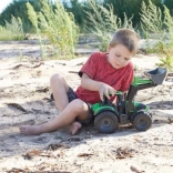 Ez a részletgazdag traktor pótkocsival ideális homokozóba, kertbe és otthoni játékhoz. A működő elülső rakodó megkönnyíti a homok vagy apró anyagok felvételét, a billenthető platós pótkocsi pedig kényelmes szállítást és kirakodást biztosít. A nagy, mintázott kerekek és a 6 mm-es fém tengelyek stabilitást és tartósságot adnak intenzív használat mellett is.