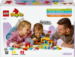 Ez az okos, 2 az 1-ben LEGO DUPLO játék és építőkészlet játékos formában nyújt tanulást. Építsenek együtt színes várat, forgassák meg a mutatót, és mozgassák az állatfigurákat a játéktáblán. Annak a színnek megfelelő elemet adják a várhoz, ahol megállnak – a csapatszellem győz, amikor minden figura beér a várba!