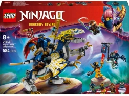 Fedezd fel a NINJAGO dinamikus világát ezzel az átépíthető készlettel, amely lehetővé teszi a 8 éves vagy idősebb gyerekeknek, hogy újrajátsszák a Sárkányok felemelkedése sorozat 3. évadának jeleneteit. A külön is irányítható karddal felszerelt mecha és a sárkánygép mozgatható szárnyakkal, fejjel, állkapoccsal, lábakkal és farokkal összeilleszthető a lenyűgöző Rogue sárkánylovas mechává. Az izgalmas csatákról 4 minifigura gondoskodik, köztük az ellenfelek, Rox és a Spektrálsárkányok harcosa standarddal és titkos üzenettel.