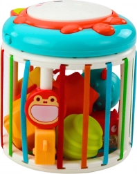 Az interaktív kocka olyan funkciókkal van felszerelve, mint a formaválogató, nyomtató elemek, rúdak a kockák átnyomására és zenei panel fény- és hanghatásokkal. A felső részen egy róka található egy dobbal, amely hangot aktivál megnyomáskor. A kocka különböző hangokat és dallamokat játszik le, amelyek gazdagítják a gyermek hallási élményét és aktivitásra ösztönzik.