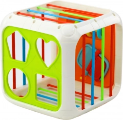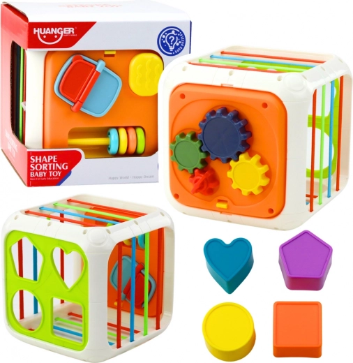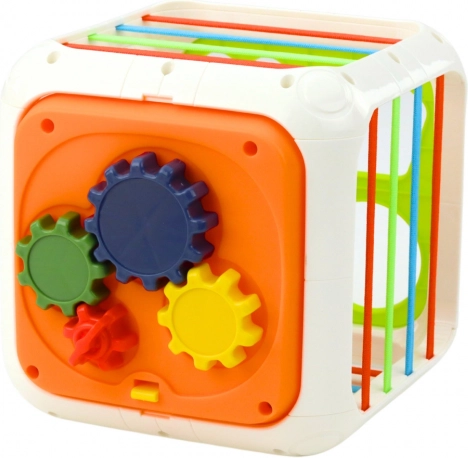 Az érzékelési kocka minden oldalán különböző funkciókat kínál, ami a játékot változatossá és vonzóvá teszi. Tartalmaz színes formákat a szortírozáshoz, melyek segítik a gyerekeket a színek és formák felismerésében, és javítják a koncentrációt. Továbbá csúsztatható gyöngyökkel, forgatható fogaskerekekkel és rugalmas rudakkal van felszerelve, melyeken át tárgyakat lehet átfűzni, ami serkenti az érzékelést és felfedezésre ösztönöz.