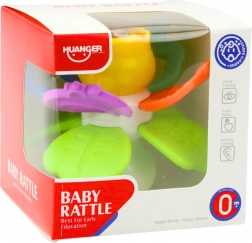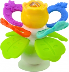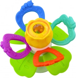 A virág forgó középső része aktivitásra ösztönzi a gyermeket és elősegíti a kezek erősítését. A színes szirmok puha, rugalmas anyagból készültek, amely alkalmas rágcsálásra – ideális a fogzás időszakában. Apró golyókkal gazdagítva a virág belsejében, amelyek finoman csörögnek mozgás közben, stimulálják a gyermek hallását és látását.