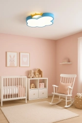 A mennyezeti LED lámpa Chmurka egy álombeli mesevilággá változtatja a gyerekszobát. A távirányítóval beállíthatja a fény intenzitását és színét, ami lehetővé teszi a világítás testre szabását a gyermekek igényei szerint játékhoz, elalváshoz vagy tanuláshoz.