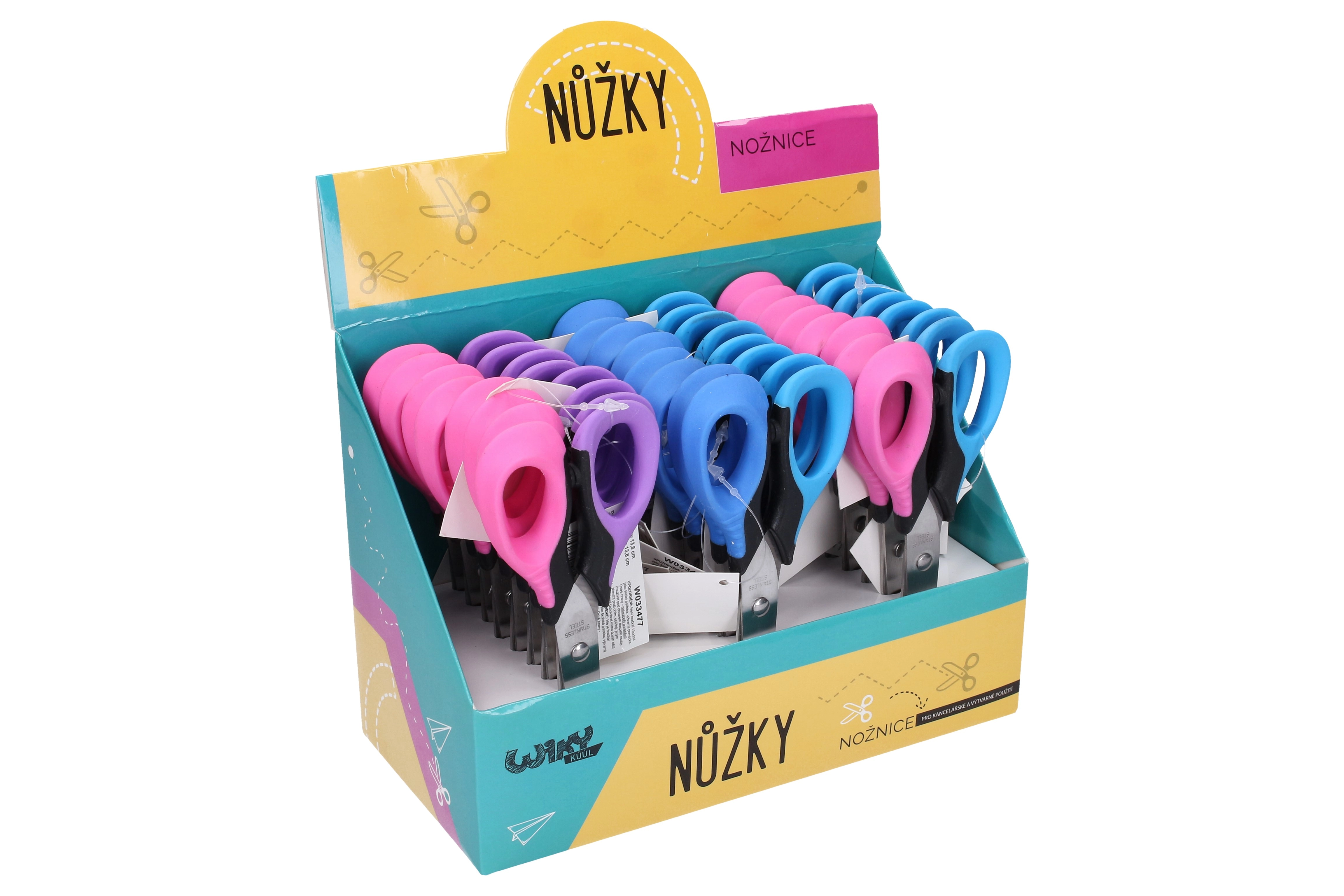 Praktikus megjelenítő dobozban, ami 24 darabot tartalmaz, ezek az ollók tökéletes választás iskolák, irodák vagy otthoni használatra.