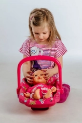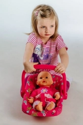 Végtelen órák szórakozásáért készült, ez a babatartó ötvözi a praktikusságot és a biztonságot. A gyerekek kényelmesen hordozhatják kedvenc babáikat az erős műanyag fogantyú és a puha, párnázott ülés segítségével.