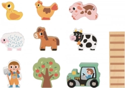 Bemutatjuk a fa összerakható tanyát az állatok kis rajongói számára. Ez a varázslatos készlet kreatív és oktató jellegű szórakozást kínál bárhová, és remek játék a gyermekek képzelőerejének fejlesztésére.