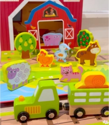 Élvezze a kreatív szórakozást ezzel a fából készült farmmal a Tooky Toy bőröndben. Finoman kidolgozott, és sokféle játék lehetőséget kínál az állatfigurák révén, amelyeket fel lehet helyezni az utánfutóra. Az egész készlet könnyen összecsukható bőröndbe, így ideális útitárs. Nagyszerű választás otthoni vagy látogatóba tartó játékhoz.