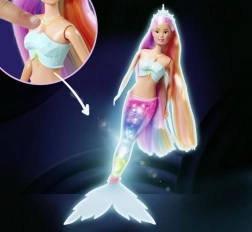 Élvezd a tengerek varázslatos világát a Steffi Sellő Babával. Rendelkezik szivárványos világító uszonnyal és extra hosszú hajjal, amelyek felejthetetlen játékélményt nyújtanak a kis hercegnőknek.