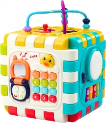 Ez a kivételes oktatókocka különféle tevékenységeket kínál gyermeke számára hat funkciójának köszönhetően. A hangszerektől a formabeillesztő játékon át a koordinációs képességet, manuális készségeket és logikus gondolkodást fejleszti. Úgy tervezték, hogy inspirálja a gyermek képzeletét és koncentrációját.