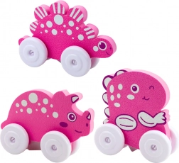 A színes dinoszauruszok kerekeken úgy lettek tervezve, hogy szórakoztassák a gyerekeket. Barátságos megjelenésük, lekerekített formáik és pasztell színeik ösztönzik a képzelőerőt. A kerekeknek köszönhetően a játékok könnyedén mozognak, és a könnyű kialakítás lehetővé teszi, hogy a gyerek könnyen tolja és bárhova magával vigye.
