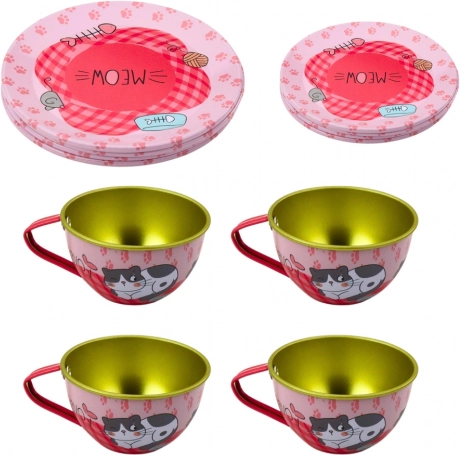 Nyújtson különleges élményt gyermekeinek a háztartási és teázós játékok során ezzel a cicás mintájú fém készlettel. A készlet úgy van tervezve, hogy támogassa a gyermekek képzeletét és szociális készségeik fejlődését. Ideális önálló játékra, vagy testvérekkel és barátokkal együtt.