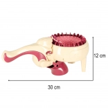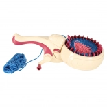 Az integrált kötőgéppel egyszerűen köthet különféle projekteket a sálaktól a sapkákig. A készlet mindent tartalmaz, amire szüksége lehet: 1 kötőgép, stabilizáló alap, tű és horgolótű. A fonalak színpalettája a sárgát, kéket, fehéret, lilát és rózsaszínt foglalja magában, ami széleskörű kombinációkat és dizájnokat tesz lehetővé.