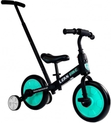 Fekete gyermek háromkerekű futóbicikli 3 az 1-ben tökéletes választás három éves kortól. Ez a futóbicikli lehetőséget ad az átalakításra – futóbicikliből klasszikus kerékpárrá, köszönhetően a levehető kerekeknek és pedáloknak. Könnyű és tartós kialakítás, erős acélból a hosszú élettartam és a kényelmes használat érdekében.