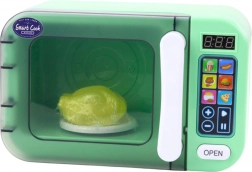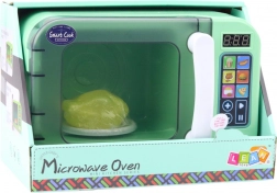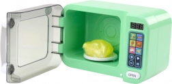 Beépített hanghatásokkal és világítással, amelyek használat közben aktiválódnak, a játék még valósághűbbé és vonzóbbá válik. Belül található egy forgótányér, amelyre a mellékelt műanyag csirkét helyezhetjük. A gyerekek a színes gombok megnyomásával szimulálhatják az ételek melegítését, mintha valódi készüléket használnának.