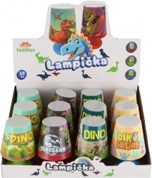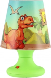 Vidám dinoszaurusz illusztrációk és élénk színek, amelyek felkeltik a gyerekek érdeklődését, és a lámpácskát kedvelt dekorációvá teszik.